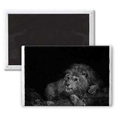 Art247 - A Lion (A Recumbent Lion) engraved by the.. - Aimant de réfrigérateur, 7,5 x 5 cm - gros bouton aimanté - aimant