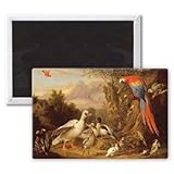 Art247 - A Macaw, Ducks, Parrots and Other Birds in a.. - Aimant de réfrigérateur, 7,5 x 5 cm - gros bouton aimanté - aimant