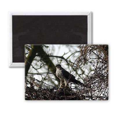 Art247 - A male sparrow hawk pictured in a garden in.. - Aimant de réfrigérateur, 7,5 x 5 cm - gros bouton aimanté - aimant