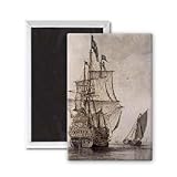 ✚✚✚ Art247 - A Man-o'-war under sail seen from the stern.. - Aimant de réfrigérateur, 7,5 x 5 cm - gros bouton aimanté - aimant