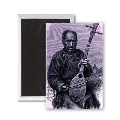 Art247 - A Mongol musician, from 'The History of.. - Aimant de réfrigérateur, 7,5 x 5 cm - gros bouton aimanté - aimant