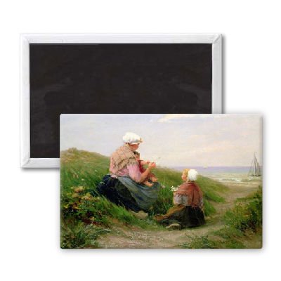 Art247 - A Mother and her Small Children by Edith Hume - Aimant de réfrigérateur, 7,5 x 5 cm - gros bouton aimanté - aimant