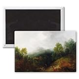 Art247 - A Mountain Valley with Rustic Figures,.. - Aimant de réfrigérateur, 7,5 x 5 cm - gros bouton aimanté - aimant